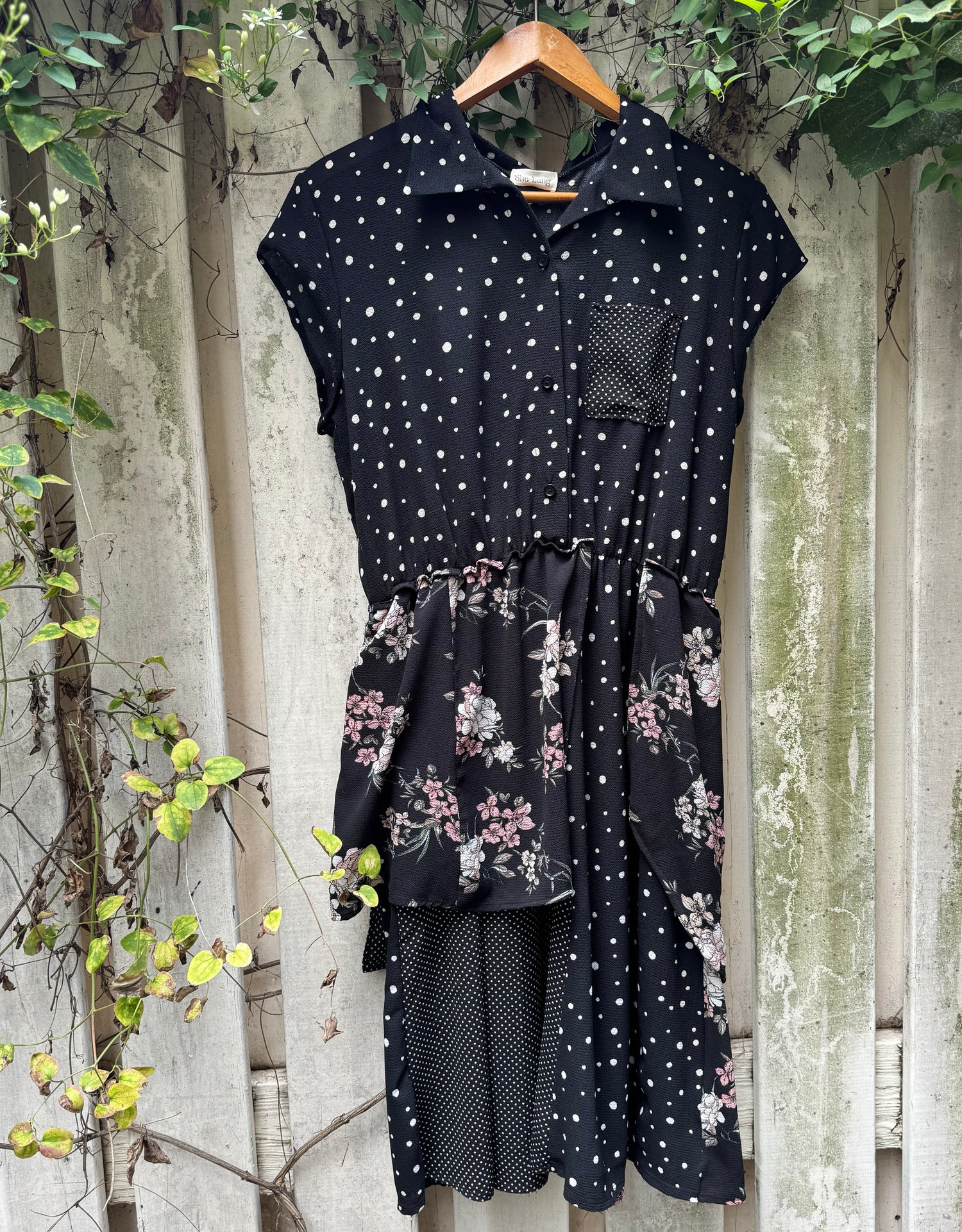 ALL of the designing, sewing, cutting, constructing, dying and painting is done by us! Upcycled fabrics, garments, trims are sourced and scavenged locally by us and re-imagined in our Brooklyn, NY home studios.