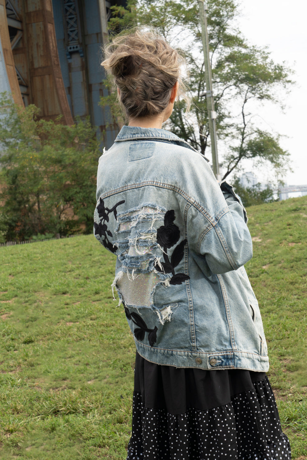 We're always thinking of new ways to repurpose into wearable designs. All of the denim and leather we use is salvaged and repurposed. We aim to utilize as much as possible to reduce waste. A single pair of jeans can be featured throughout multiple pieces in our collection!