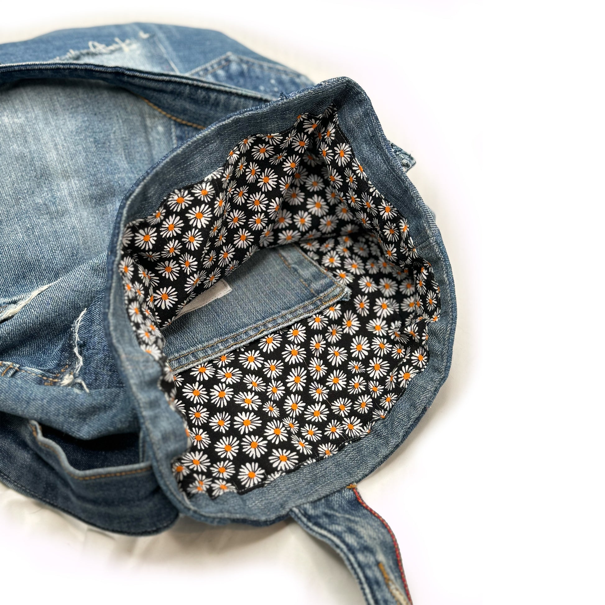 *Each bag will vary slightly appearance, as each piece is made to order with available denim jeans.